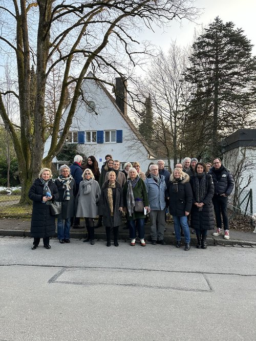 Die denkmalpolitische Sprecherin der Grünen Landtagsfraktion organisierte in der Hugo-Junkers-Straße in Grünwald einen Ortstermin. Zu diesem kamen neben vielen Anwohnerinnen und Anwohnern auch der zuständige Referent des Landesamts für Denkmalpflege, Dr. Burkhard Körner, und Dr. Irene Meissner, Vorstandsmitglied der Sep-Ruf-Gesellschaft.