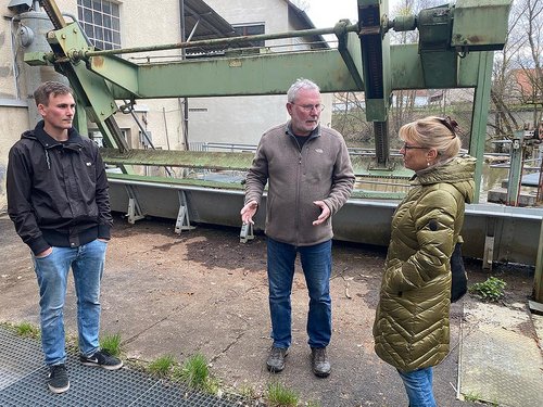 An diesem Standort wird seit Anfang des 15. Jahrhunderts die Wasserkraft der Schwarzach genutzt. Der Bau eines Stauwehrs ist für das Jahr 1404 belegt und 1435 wird die Mühle zum ersten Mal urkundlich erwähnt, wie der aktuelle Besitzer Harald Assenbaum erläuterte. Zusammen mit seinem Sohn Paul führte er die Abgeordnete durch seine Anlage.