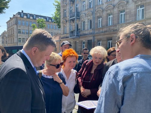 Die Fürther Stadtheimatpfleger Karin Jungkunz und Lothar Berthold, der bei dem Ortstermin anwesend war, sehen in den Gebäuden in der Amalienstraße zwischen Logenhaus und Schwabacher Straße ein schützenswertes Ensemble und sind gegen die Bebauung des freien Grundstücks. Damit der Landesdenkmalrat aktiv werden kann, muss dies bei der Untere Denkmalschutzbehörde der Stadt Fürth beantragt werden. Dies haben bislang weder die Stadtheimatpflege noch eine Privatperson getan. „Nach diesem Termin ist klar, dass ein Antrag gestellt werden wird. Ich begleite und unterstütze dabei sehr gerne“, sagt die Landtagsabgeordnete aus Fürth, Barbara Fuchs.