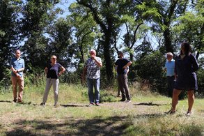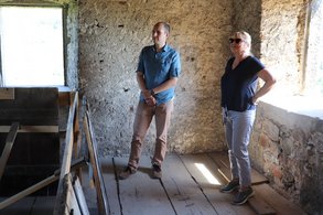 Mit einer Wanderung zu zwei mittelalterlichen Burgruinen auf dem Bad Bernecker Schlossberg erfreute uns Station 5 der Oberfrankentour. Eingeladen hatte Tim Pargent MdL, regionaler Abgeordneter der grünen Landtagsfraktion aus aktuellem Anlass. Thema war die Instandhaltung der Burgruine Hohenberneck mit hohem Fördermittelbedarf. Problematisch war hier weniger die Zuweisung von Fördermitteln, sondern der notwendige Eigenanteil der Kommune die unter Finanzaufsicht des Landratsamts steht. Entlang der Vio Imperii, unter fachkundiger Führung von Claus Rabsahl und Albrecht Diller vom Förderverein historischer Stätten e.V. bewunderte Sabine Weigand zunächst das alte Schloss und die Marienkapelle ehe das Ziel erreicht wurde: Hohenberneck. Albrecht Diller erläuterte die bestehenden Schäden am Mauerwerk, eine nachlassende Festigkeit und die schadhaften Ergänzungen aus der Zeit der Romantik, die einer Erneuerung bedürfen. Norbert Zapf von der Unteren Denkmalschutzbehörde erklärte, dass der Antrag auf Fördermittel aus dem Entschädigungsfonds in Höhe von 1,3 Mio Euro eingereicht wurde. Die Aussichten auf Förderung sind sehr gut, da inzwischen auch gesichert ist, dass die Stadt ihren finanziellen Beitrag leisten kann. Sabine Weigand freute sich, das nun einer baldigen Sanierung nichts mehr im Wege steht.