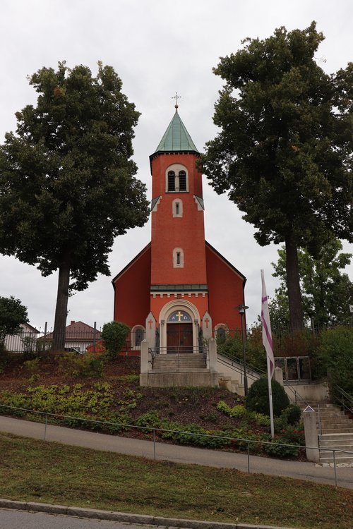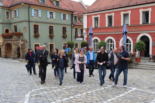 Anschließend spazierten wir den kurzen Weg zur Kreuzkirche, die am Rande der Altstadt liegt und am ehemaligen Pestfriedhof erbaut wurde. Auch sie erlitt massive Hagelschäden an der Fassade im Sommer 2018, für deren Sanierungskosten die Mittel noch unsicher sind.