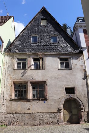 Im Beisein des oberfränkischen Landtagskollegen Tim Pargent zeigten der Vertreter der Stadt Kulmbach und der Unteren Denkmalschutzbehörde Bernd Kolb, die drei Heimatpfleger Uwe Franke, Siegfried Sesselmann und Harald Stark, Bürgermeister Frank Wilzok sowie einige Interessierten das Renaissance-Gebäude Fischergasse 22, das von seinem Besitzer sukzessiv dem Verfall preisgegeben wird.