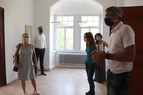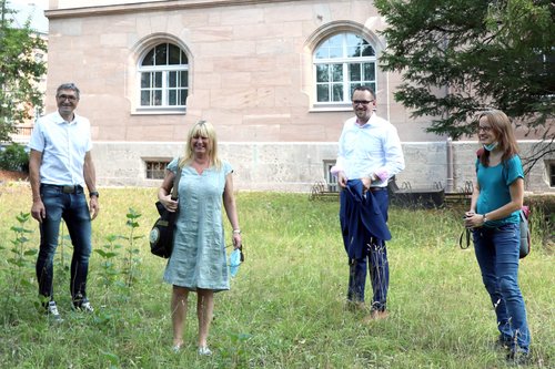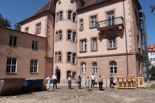 Ein Heimspiel hatte Sabine Weigand am Ende der Denkmalschutztour. In der Heimatstadt Schwabach besuchte sie das „Alte Finanzamt“, eine Bauwerk von 1903, der Phase des Historismus. Bauherren sind die Eheleute Diane und Alexander Summa, die selbst nicht anwesend sein konnten und von ihrem Architekten Reinhard Urbansky vertreten wurden. Weitere Begleiter waren Oberbürgermeiser Peter Reiß, Dr. Katja Müller als Gebietsreferentin des Landesamts für Denkmalpflege, Kai Maier von der Unteren Denkmalschutzbehörde und Saskia Müller als Vertreterin des Bezirks Mittelfranken.
