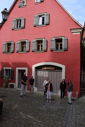 Letzte Station der Denkmalschutztour in Unterfranken war die Stadt Volkach. Auf Einladung des Kreisverbands besuchte Sabine Weigand das sanierte ehemalige Badhaus von Ulrike und Mario Pierl, beide Mitglieder des Grünen Ortsverbands. Neben den Eigentümern wurde sie erwartet von der 3. Bürgermeisterin Gerlinde Martin, Stadträtin und Bezirksgeschäftsführerin Andrea Rauch und dem Grünen Mitglied Roland Hornung, der als Projektentwickler bei der Sparkasse tätig war.