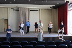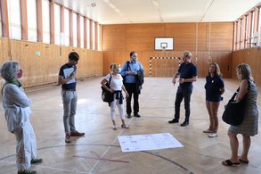 Auch das Mozart-Gymnasium, das auf dem Gelände der ehemaligen Mast-Schule entstand, war ein Wiederaufbauprojekt der Nachkriegsjahre. Dort wurden die Besucher aus dem Landtag empfangen von Michael Altrock vom städtischen Bauamt/Fachabteilung Hochbau und Grischa Büttner, der das beauftragte Planungsbüro vertrat.