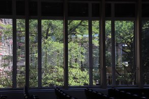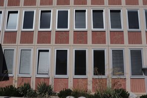 Die Kunst am Bau, typisch für die Nachkriegsjahre, bleibt erhalten. Alle relevanten Objekte wurden gesichert und verschalt. Aufgrund der denkmalgeschützten Fassade muss auch hier die Dämmung innen angebracht werden. Da das Dach ebenfalls aus einem Drahtdachstuhl besteht, muss die Dämmung in die Decke verlegt werden. Der Planer ist sich sicher, dass der Standard „KfW-Effizienzhaus 100“ erreicht wird, was bei denkmalgeschützten Gebäuden selten der Fall ist.