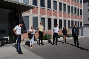Vor der Polizeiinspektion wurden sie empfangen von Dienststellenleiter Matthias Weber, seinem Stellvertreter Florian Koch und dem Innendienstleiter Schubert.
