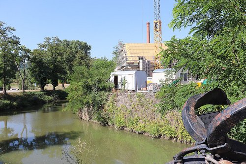 Die fachliche Leitung übernahm Architekt Friedrich Staib, in dessen Büro die Sanierung des gesamten Geländes geplant wird. Er beschrieb zunächst die Genese von der einfachen Laderampe, die später mit einem Ladekran ausgestattet wurde, von dem heute nur noch der markante sechseckige Sockel steht. Später folgten Fabrikgebäude und der hohe Kamin. Die Fabrik war bekannt für die Herstellung von Druckerschwärze und Kleinbriketts aus Kohlestaub. Zuletzt wurden dort Seile produziert, ehe die Anlage in einen fast 20jährigen Dornröschenschlaf fiel.