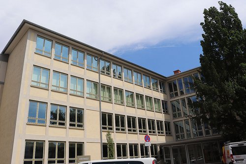 Bereits vor zwei Jahren hatte Weigand das Areal des ehemaligen Mozart-Gymnasiums in Augenschein genommen. Ein Teil der umfassenden Sanierung des gesamten 50er Jahre-Ensembles ist inzwischen abgeschlossen. Joachim Erhard, stellvertretender Vorstandssprecher der VR-Bank, beschrieb die Baumaßnahmen, die in Zusammenarbeit mit der Stadt und den Denkmalschutzbehörden ausgeführt wurden. Die Fassade stimmt in Farbe und Dekor mit der ursprünglichen Fassade überein. Die Fenster sind hinsichtlich Schall- und Wärmeschutz optimiert, aber auch hier blieb der Stil der Bauzeit erhalten.
