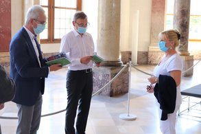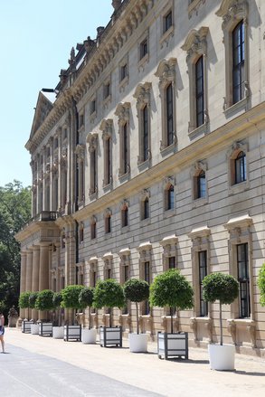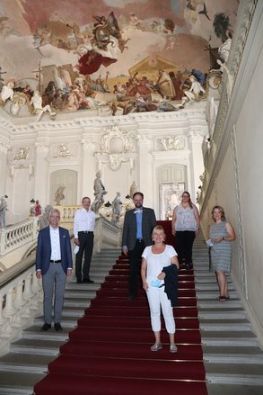 Im Rahmen der Denkmalschutztour 2020 stand mit der Würzburger Residenz und Hofgarten erstmals ein Ziel auf dem Tourfahrplan, das das Attribut „UNESCO-Welterbe“ trägt. Empfangen wurde Sabine Weigand, in Begleitung Ihrer Landtagskollegen Kerstin Celina und Patrick Friedl sowie der Grünen Kreisvorsitzenden Jessica Hecht von Bernd Schreiber, Präsident der Bayerischen Verwaltung der staatlichen Schlösser, Gärten und Seen sowie Gerhard Weiler, Vorstand der Außenverwaltung Würzburg mit Zuständigkeit für Residenz und Hofgarten, Festung Marienberg und Schloss Veitshöchheim mit den jeweiligen Gärten.
