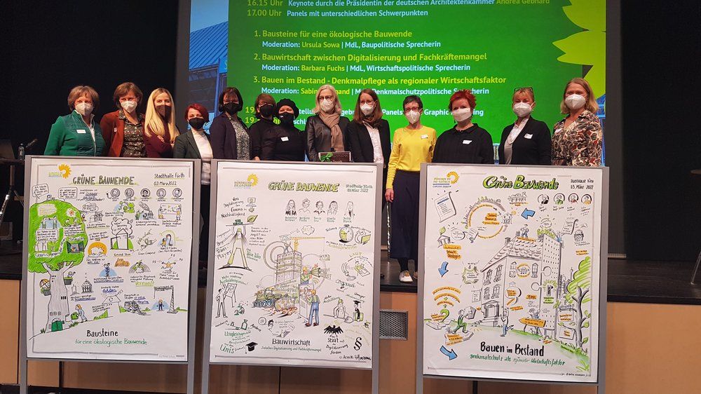 Der Grüne Baugipfel in der Fürther Stadthalle war ein voller Erfolg. Mit hochrangigen Expertinnen hat die denkmalpolitische Sprecherin der Grünen Landtagsfraktion, Dr. Sabine Weigand, zusammen mit der wirtschaftspolitischen Sprecherin Barbara Fuchs und der baupolitischen Sprecherin Ursula Sowa folgende Fragen in den Mittelpunkt der zukunftsweisenden Debatte gerückt: