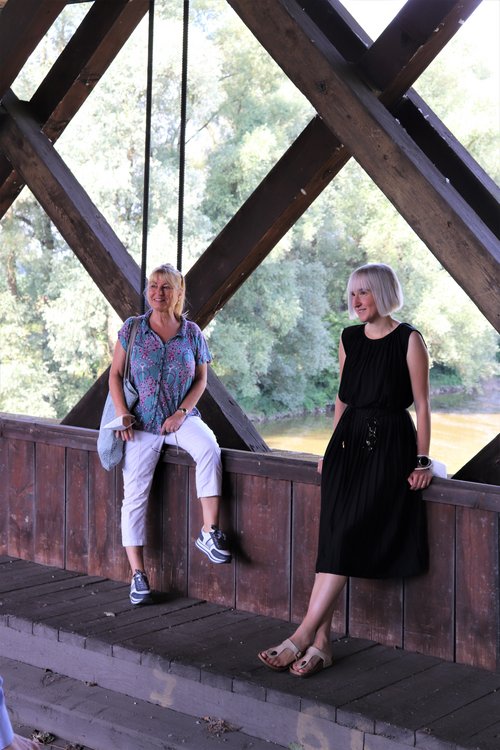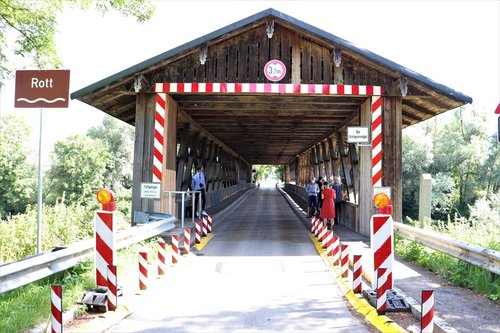 Auf Einladung des Kreisverbands Passau-Land führte die Denkmaltour an Tag 5 nach Neuhaus am Inn zur Rottbrücke. Eine Brücke mit einer sehr speziellen Holzkonstruktion auf einer uralten Verbindungsachse, wie archäologische Funde zeigen. Die Brücke wurde 1853 erbaut und steht aufgrund ihrer seltenen Bauart und der großartigen Ingenieurleistung unter Denkmalschutz. Leider ist der Überweg dem modernen motorisieren Verkehr nicht gewachsen und muss saniert werden. Zudem birgt die Konstruktion bei möglichen Unfällen statische Probleme. Momentan ist deshalb die einspurige Brücke nur mit 10 km/h befahrbar. Perspektivisch muss aber wohl eine nachhaltige Lösung her. Momentan steht eine Versetzung der Brücke und ein zweispurig befahrbarer Neubau im Raum. Bei der Diskussion zwischen den örtlichen Grünen, dem Denkmalschutz und MdL Weigand wurde das Dilemma deutlich: Dem Denkmalschutz wäre es am liebsten, die Brücke bliebe an ihrer angestammten Stelle und würde saniert. „Ein Denkmal gehört da hin, wo es ist,“ macht Sabine Weigand deutlich. „Und gerade hier, wo dieses Zeugnis früher Ingenieurkunst eine einmalige Symbiose mit der umgebenden Natur und dem Fluss eingeht“. Nach einer Sanierung wäre wohl aber die Durchfahrt für Autos nicht mehr möglich. Ein Neubau neben der alten Brücke ist angedacht, würde allerdings die Denkmalwirkung stark beeinträchtigen – solche „Nähefälle“ sind eigentlich denkmalfachlich nicht zulässig. Eine Alternative gäbe es mit einem kleinen Umweg über eine Parallelstraße. Die beste Lösung für alle wird die Kommunalpolitik wohl noch länger beschäftigen.