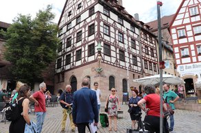 Im zweiten Teil des Prologs führte Karl-Heinz Enderle (1. Vorsitzender der Altstadtfreunde Nürnberg e.V.) durch das seit 2008 leerstehende Pilatushaus. Das Gebäude mit der goldenen Figur des St.-Georg dominiert den Tiergärtnertorplatz und wird von den Altstadtfreunden saniert. Die Kostenschätzung beläuft sich auf etwa 3,8 Mio €. Die sechs Ebenen des markanten Fachwerkhauses sollen dann Gastronomie und Wohnungen beherbergen.