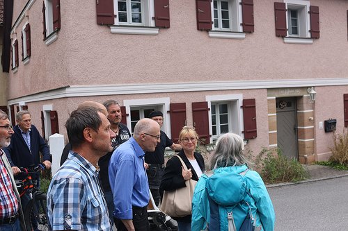 Unter fachkundiger Führung von Klaus Nopitsch folgte ein Rundgang durch den Altort Rednitzhembach, beginnend an der Kirche, über Rother Straße und Wilhelm-Drescher-Straße. Der Altort ist sehr heterogen. Viele Bauernhöfe wurden in den letzten Jahrzehnten abgerissen und durch moderne Bauten ersetzt. Eine Reihe denkmalgeschützter Gebäude existiert, in sehr unterschiedlichen Erhaltungszuständen. Ein Teil davon ist vorbildlich renoviert, aber es gibt auch ungenutzte Gebäude mit deutlich sichtbarem Sanierungsbedarf.