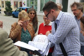 Ein Stadtrundgang unter Leitung von Stadtbaumeister Baier, der ehemaligen Stadträtin Marlene Lobenwein und Museumsleiter Guido Schmid führte zu mehreren Objekten im Rother Stadtzentrum. In der Traubengasse und der Zeughausgasse werden vier Häuser von privat für eine Wohnnutzung saniert. Ebenfalls in der Zeughausgasse soll das Stadtbauamt in ein denkmalgeschütztes Haus einziehen. Direkt am Rand der Altstadt wird von einem privaten Bauträger die ehemalige Christbaumschmuckfabrik Stadelmann mit der daran anschließenden Unternehmervilla saniert.